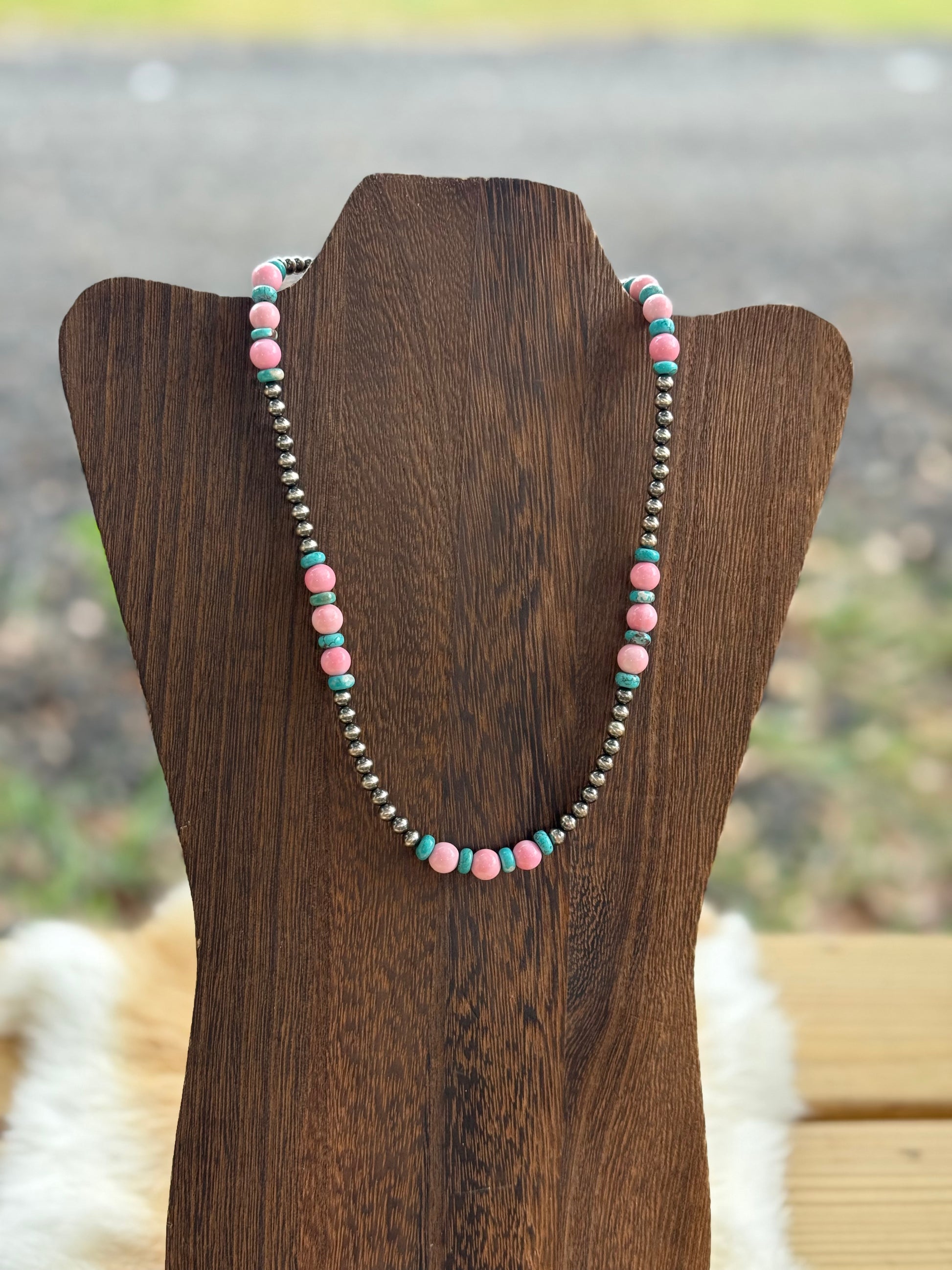 18” 6mm Sterling silver pearls with turquoise and pink conch